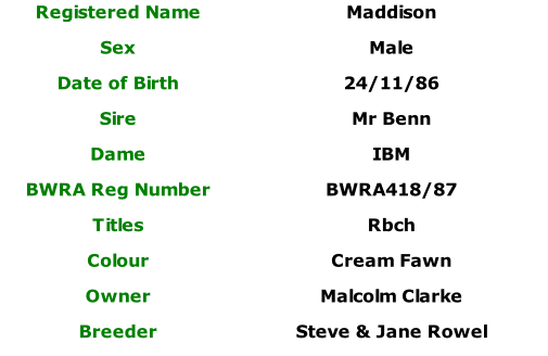 If you can not find your dog/bitches breeding on this site inform Malcolm Clarke and this will be updated as soon as possible.